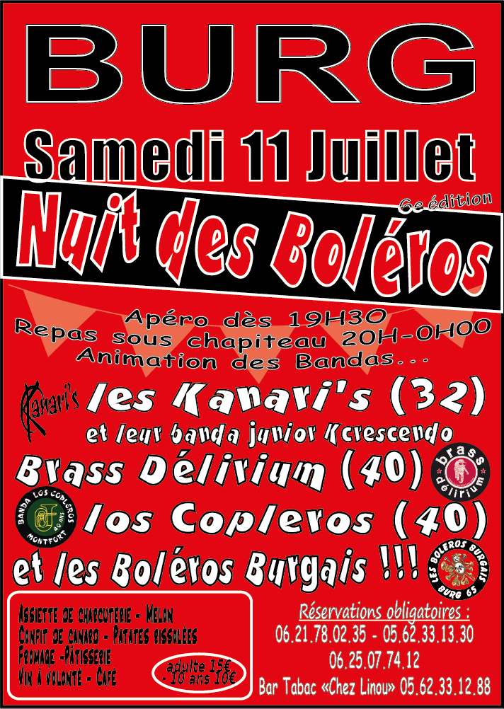 La nuit des Boléros c'est une soirée animée avec apéro et repas sous chapiteau. Musique, convivialité et bonne humeur seront au rendez-vous le 11 juillet 2015!